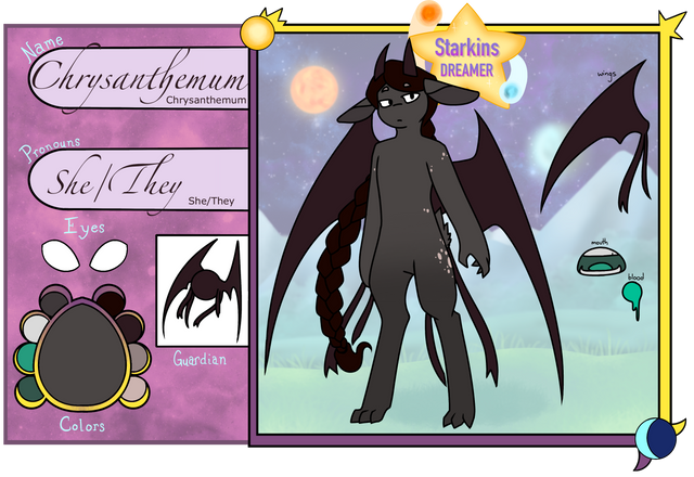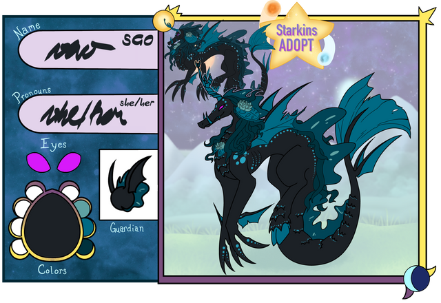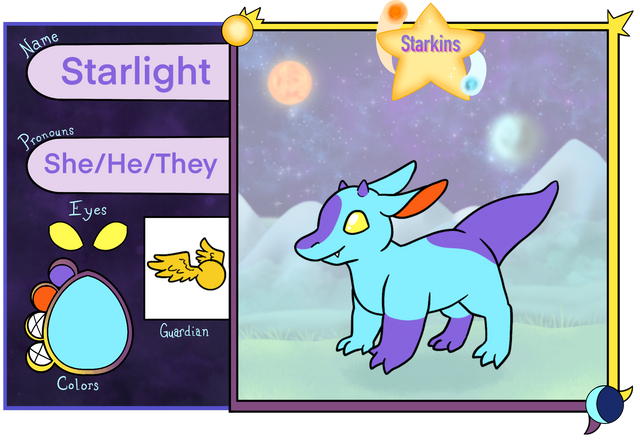 #alien #bright #character #colorful #contrast #dark #dragon #highlight #neon #oc #open #quadruped #space #sparkly #species #star #starkin #urroa