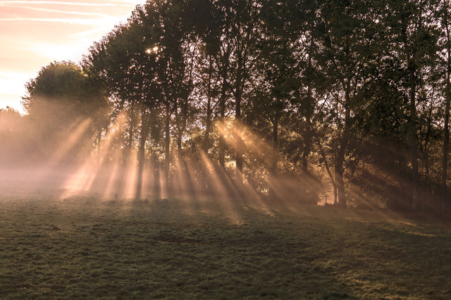 What a beautiful capture! I love the misty mood and how the sun is shining through the trees