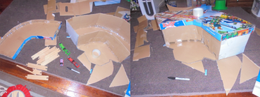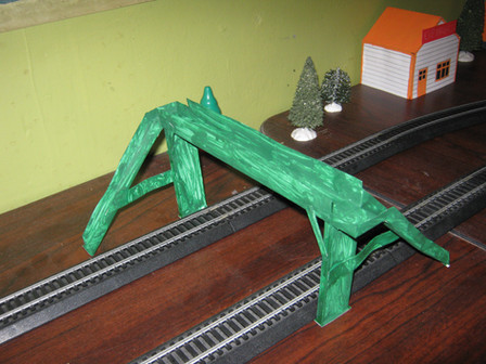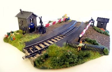 One of many things I worked on over the winter break.The level crossing was fun to work on; cardboard, index cards, paper, straws, glue and gluestick turners (whatever they're called), and it adds roadway to the railway.