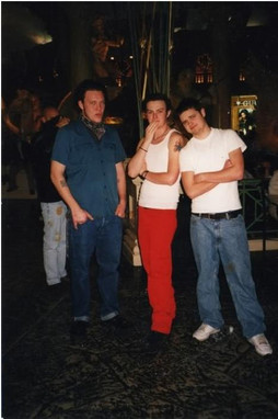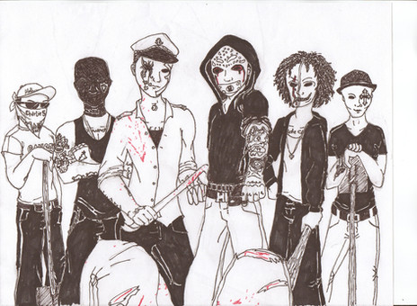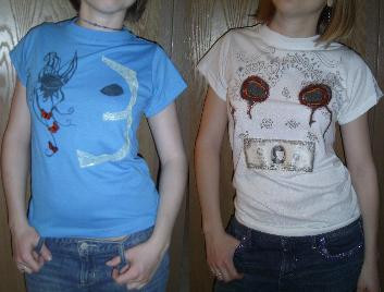 Our fucking awesome purses!! This is only the pictures of them in progress. We still have some stuff to do to them (add pockets on the inside, lyrics on the back, butterflies on the J3T back, their mask symbols, and bling bling baby--and whatever else we want). No-sew designThe top shows Puey's front and back, the bottom shows Al's front and back. We will add finished pictures when we complete them.