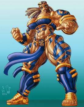 I was just thinking she's Egyptian. She worships Sekhmet the Egyptian war goddess.