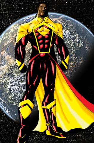 Never heard of this guy before. Not a great design, although i like the cape and the gold bands. They seem to have gone a bit mad with the african colour scheme, there's at least one to many in my opinion. You did a grat job though!