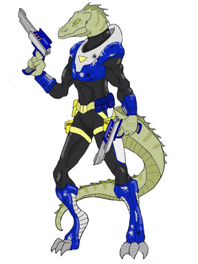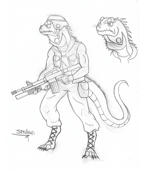 Commission forThis one was a lot of fun. I had to learn to draw a dinosaur AND an Uzi!