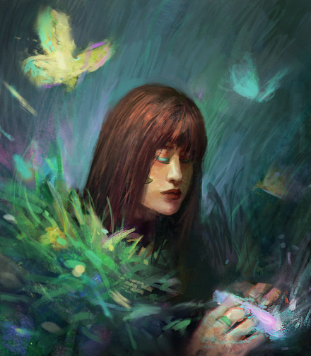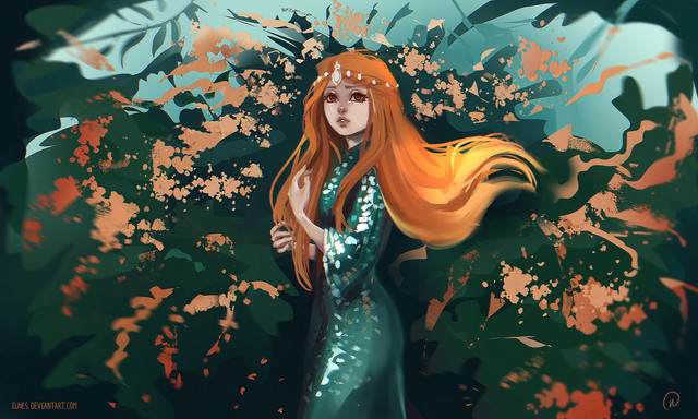 The ferns are so beautiful! The colours are great, and sync nicely! I'm really impressed by your shading, and colouring without lines. It's very praiseworthy!