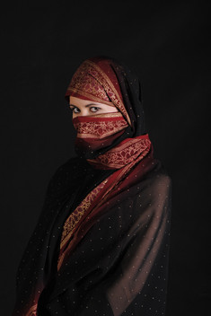 The face covering can't hide her beauty. Nice contrast and skin tones. I'm curious about the meaning of the face ornament. Is it for married women?