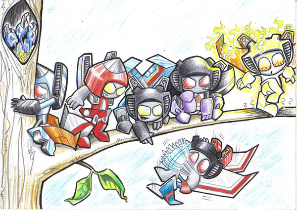 I somehow sense a secret dislike for minibots in this picture. XD