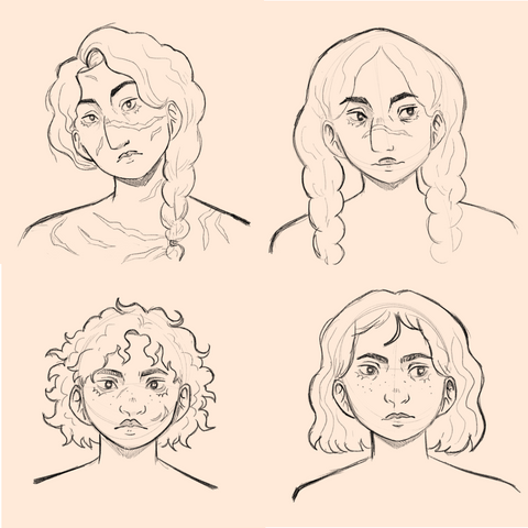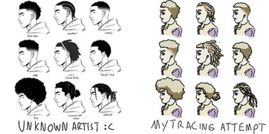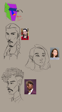 -Paris never really had set facial features and almost every drawing of him would come out different. I got caught up in him being the youngest of the group, and in trying to push his youthful features, I think I softened him up too much. His hair was also never decided on, I just knew I wanted it to be big! I made him more angular, gave him freckles, and defined his ringlets. He also has a septum piercing and stretched ears now. His style is heavily inspired by Jaden Smith (hence my experiment with the dreads haha)