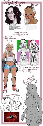 -Her personality used to be all goof, but I thought it would be a nice contrast to make her unexpectedly insightful. She also was originally a tattoo artist, but I made her a hairdresser instead. She will have tattoos tho!