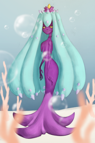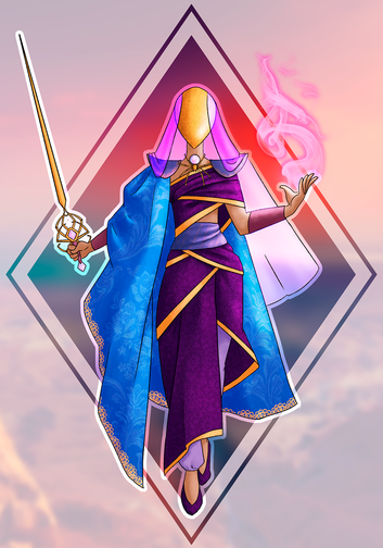 Cotton candy witch tiefling: Check.Pebble is a small witch with crystal-like horns. Nasty cauldron accident. Turns out the newt-brew reacts poorly with tieflinghorns.