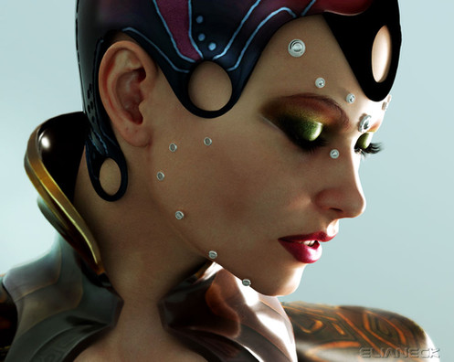 Amazing, stunning, breathtaking! I love the blanc stare in the eyes and the H.R. Giger style headpiece. Instant fav!