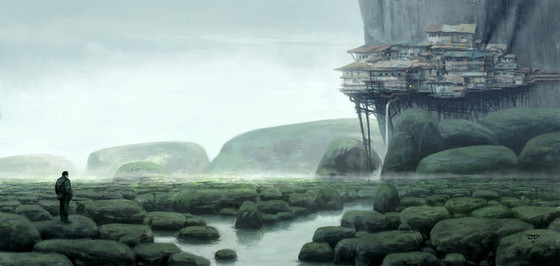 I love the kind of land you imagined here, sort of marshes reflecting the human structures. Very original and good looking.