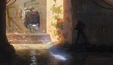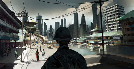 #boat #bridge #police #scifi #slum #sunlight #city #conceptart #illustration #sciencefiction