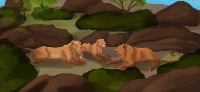 Something that irks me a bit about the set up of canon characters is the litters of cubs are always rather small and therefore less realistic. I like creating new characters that help beef out existing canon character's backgrounds, and in part it helps increase the pride size and make the pride of The Pridelands more like a real lion pride. So Sobana is the mother of Kula and Chumvi.