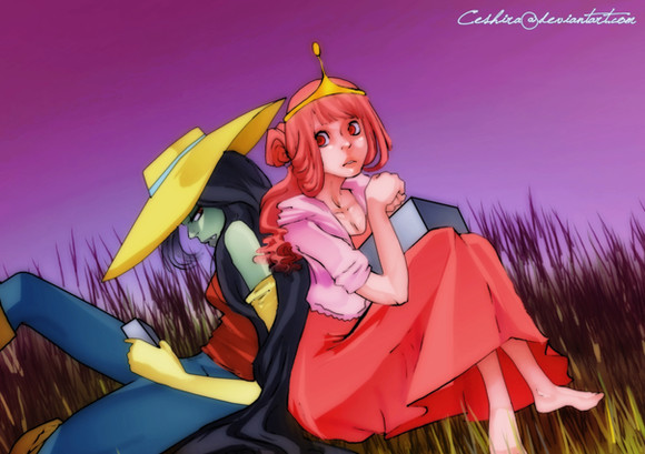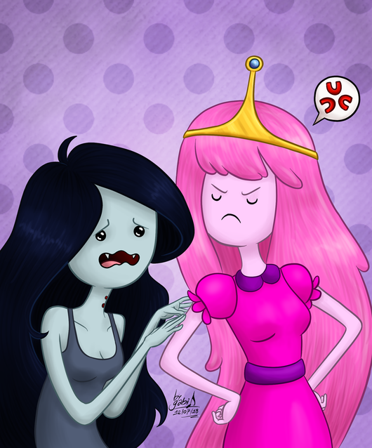 I really like the simple look. The faces on the two are just priceless. Bubblegum looks happy and in the moment, while Marceline looks a little uncertain. I also like the color of Marceline's hair. Great work!