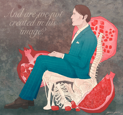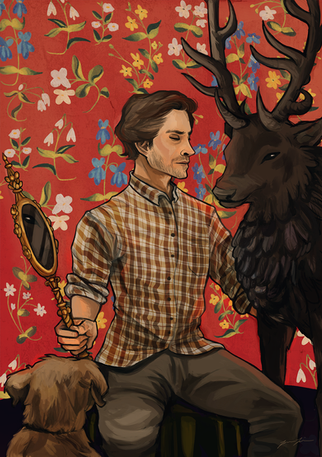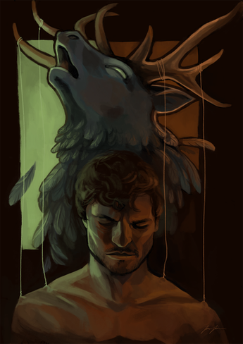Giveaway prize for an user on tumblr, who asked for Will and Hannibal facing each other with the ravenstag inbetween.I figured I could try another colour scheme than my usual dark tones.