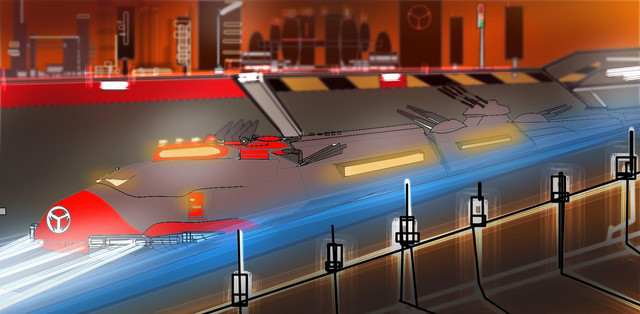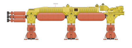 While the Halbert-class cargo freighter carries less containers than even an old Earth sea ship, its ability to land in under developed areas made it perfect for supporting budding colony operations. It carries its own trucks and heavy forklifts in its drive thorough loading area on the bottom deck if needed.
