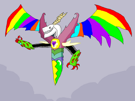 Another doodle of my version of Asriel Dreemurr. Frisk abandoned him in the final fight, quitting the game and never coming back. So he grew older will all those souls inside of him, the monster ones acting like glue to the human ones, and they’re slowly being ‘digested’ into a single soul for him.