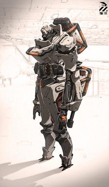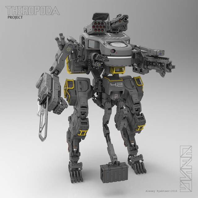 This is a total badass robot. love the design and all the delicate details. I like how deliberately you've added different weapons and accessories. You're a pro concept artist.Β