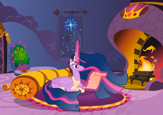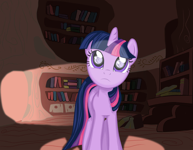 Well done, but there are some little things: Twilights rearleg looks a bit strange and I can some lines on Twilights Face, flank and one on her left frontleg. There is also a line over the books in the upper left corner of the right bookshelve.