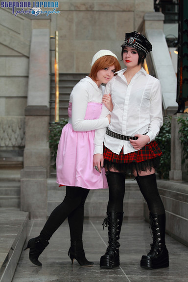 Me(pink skirt) hugging my nephew Lu cosplaying Miyavi at Romics 2007^^ITA:*prende nipote in spalla e fugge*X°°D questa foto mi fà ridereXD
