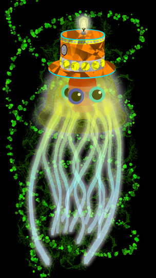 The first thing most Okcilians notice when they meet Astro is his small drone. The most unusual behavior among Okcilians Astro is known for is his weird glitchy greetings, such as “Hello, how are your processors running Tuesday?” and “!sdrawkcab gniklat evol I ,olleH”. If there is one thing he can’t stand, it’s when he sees actions reflecting disrespect of his kind. Although he doesn’t know that he is a purebred, Astro shuns individuals that show disrespect towards the Okcilian Empire and will never interact with them in any way unless it is very important. In spite of the fact that he was originally an AI experiment, the young jelly loves to do nothing more than programming, which was his original purpose. Astro is the best friend of all four of the "Original Okcilians" and is eager and optimistic when near them, especially their leader, R-ME, who is his employer. (I will provide R-ME’s Ref Sheet soon.)The special relationship of which he has with him began when Astro decorrupted his system at his palace. Another pair of weird things the machine is also known for is his hatred of blood and how he always uses his titanic vocabulary when discussing anything technological, which is quite a bit. Due to his behemoth processors and hard drives, along with his fantastic AI, only R-ME has ever beaten him in any logic-based Okcilian games. Astro honestly hasn’t unlocked much of his inner power yet and therefore is not inclined to not to do much of anything that doesn't involve calculating, programming, knowledge, or logic other than conversation. Unlike most other Okcilians, he does not have any Organic Processing Units, which is why he is a "pure mechanical" Okcilian.