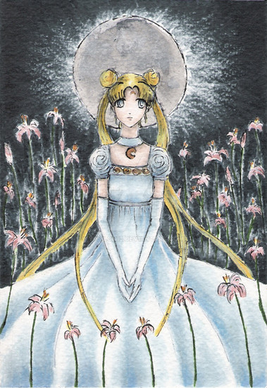 This is absolutely gorgeous. You've done a wonderful job. I love the background, the clothes, the veil, the little details on the moon....I love this whole pic. ^-^
