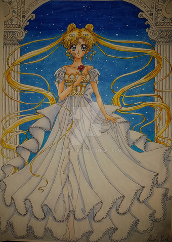 Or, more aptly entitled "Claire discovers the blend marker". "And backgrounds".Obviously, Neo-Queen Serenity. But! Not her usual gown, no no. I thought it'd be neat if I could make a gown loosely based off of her Sailor Uniform, and so I did. The veil was hard as nails to get right XD even then I don't like it much. And the background, eick. But oh well! I like the overall effect, and had to cut out many of the stars I drew because it looked like snow.