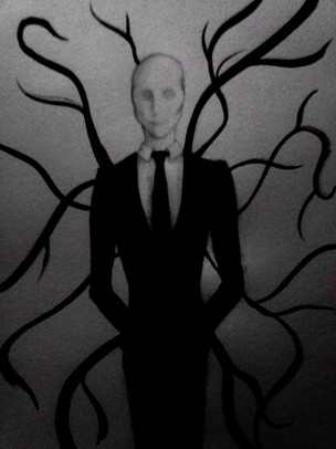 According to my friend, I shit awesome pictures...A slightly new twist to Slendy, with creepy shadowy mass for tentacles instead of the pitch black ones. I edited this slightly with the GIMP to give some depth and to add contrast to Slendy and the background. He also has a barrel chest for some reason.