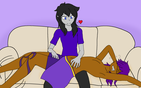 That didn't turn out too bad considering my camera has lower picture quality than my phone. XD I still miss my laptop though. I epically messed up on Jomeiah's leg when outlining this. >o<Yes he's actually letting her tickle him. They're just snuggling. She's not in the mood to make him laugh and squirm, she's just tickling enough to make him giggle a little. And Neshae might as well agree to it or she might just tie him down and tickle him anyway. XD And he loves her enough to let her lightly tickle him every now and then.