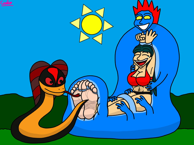 This is a pic requested by He wanted to be tickled by my characters and who better to do the job than Jomeiah and Marjahsi? XD Though Marji turned out pretty weird in this one. I'm not sure where I was going with that, but it turned out pretty cool.Edit: