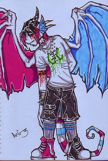 Bottom: Erik my Phantom Shoyru. Yesyes, more shirtless characters. It was fun drawing all of his deformations.