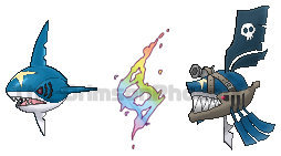 And added to detail. You gave this Pokemon a chainring so that it makes sense on why the sprite of the shark's back tail fin has some little spikes there so it can smack any Pokemon with steel typing in water fish.
