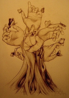 At first, I fell in love with the vibrant colors and how they are ravishingly beautiful, but I thought that this painting refered to cutting and the so called "release" that it brings, sorry, don't agree with that theory, but then I seen that the butterfly that was not dead was flying toward the hand instead of away like a release. So, maybe, this painting could be a smaller scale of humans. Example.....Humans, compared to Earth or God, we are so small and fragile like the butterfly. In this painting, The hand is the higher power and the butterfly is the fragile life that lives under that power. Not only is that a way to look at this painting, but maybe since the butterflies represent the life in the universe, maybe the painting is saying that for every life that passes, a new one comes along. It's begining and end, death and rebirth. The dead butterfly leaves and in flies the living on, embracing life, ready to live. Sorry to write so much, but I love the painting, very exquisite. Crazily enough, the colors and the way you painted it gives a feeling of chaos in slow motiong or the hand that is still is tranquility and the fiery colors in the background is life in all its insanity. I would love to here what you have to say to my humoungous comment!