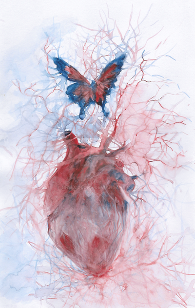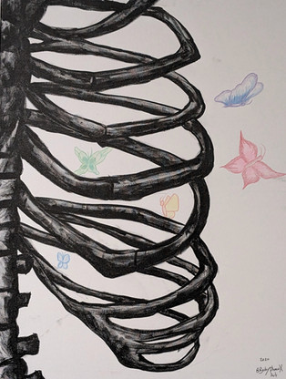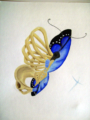 watercolors. part of a concentration from last year.butterflies with body parts, organs, and bones.