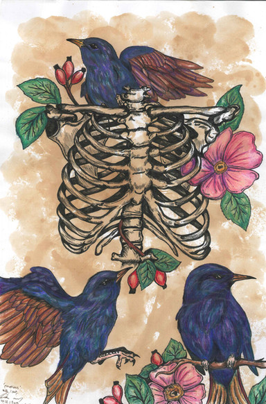 It's pretty...the butterflys make the whole picture as in the bones look almost peaceful. It's good