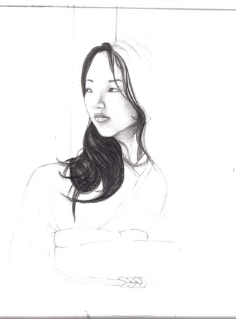 Faber-Castell HB, B, F, 2B, 3B. Used 6B graphite crayon for the border. Used a perfection eraser pencil for the details on the scarf.
