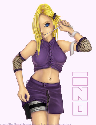 Gaaaahhhhhh!! DA went down yesterday, and I can't upload my new update on time xP Oh well Atlease I got one for today hahaaIt's Ino everyone, I know she's not the most popular character and all but I like her, I think she's hot! When she first appear in the chunin exam eps, i was like O_O she's prettyer than Sakura. I love her long blond hair! >_< untill she go a little phycho fighting with Sakura over Sasuke...that's when I step back and rethink....uhh yeah she's a little annoyed. lol But yea anywwayyy, she's awesome in curtain degree. and I must have her in my gallery, please enjoy this piece.