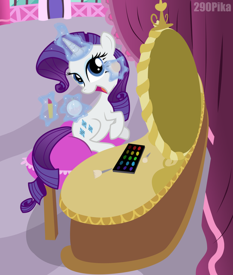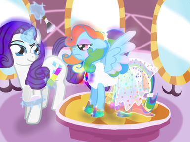 Rarity takes revenge on Rainbow dash by making her look elegant and femininefor