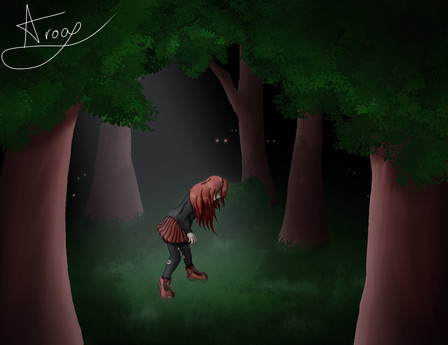 the ground textures are really nice, i'd use em on the trees as well. those eyes are bonkers but i guess that's your style. might try moving them around a bit as they are pointed different directions and the position makes the face look kind of misshapen. if you flip horizontal, you'll probably see what i mean. good work!