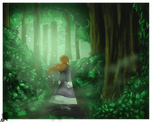 Lovely colours. Awesome how the trees frame this piece. Who is she waiting for?