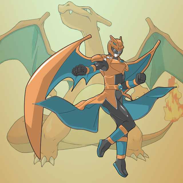 Commission by this is the Charizard Ranger, a Mighty Morphin Power Ranger based off Charizard. He has a cape to resemble Charizard's wings and his weapon is the Charizard Spear, a special type of weapon capable of various fire, flying, another types of attacks as well. Years ago, I've always dreamed of an orange Ranger based off Charizard ever since watching Mighty Morphin Power Rangers the Movie. The question though back then was how to visualize it? What should it look like? Thanks to some of the Shattered Grid pics from Power Rangers media of today, I was able to visualize it perfectly, and I'm proud of how it looks.Related content