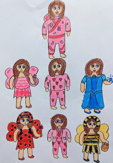 I was planning to save this for later, but what the hey, might as well get it out the way as i just finished a big ish project ((going up soon guys, i have a few smaller peices to put up first)) so here's another refrecne sheet of my OC Fish this time getting ready for bed, Her dollies and her fast asleep ((yes, she still sometimes has a pacifier for bedtime))i'm probably gonna need to draw the dolls seperatly anyway so i can do more detail + additional outfits for them. Faya does have an uncanny resembalance to Fish, but in universe, that was purely by accident, Her grandmother made Faya for Fish as afirst birthday present and had no idea they'd end up looking similar... oops, at least Fish loves the doll ((she probably chose her own fairy outfit because of Faya)) Lilly is from a story of mine i sadly lost as it was mostly hand written (9and i'd want to rewrite it anyways)) and Zoey actually belonged to Fish's big sister Darkdoom, but she didn't want the doll any more and Fish adopted her as a result.