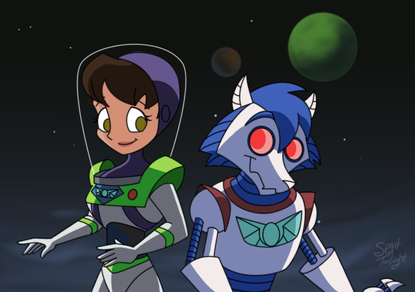 A commission I did for :iconwielderofblueflame: of the Centaur-Like Ranger taking off. We bounced back and forth about how her body type works with her jetpack, and the solution we settled on was that hers is a specialty jetpack (like how Booster's uses rockets instead of wings, and he interprets a statement in the manual about how gas mileage may vary as referring specifically to him, implying that he's the only ranger at Star Command to use that type of jetpack, implying that the LGMs are willing to manufacture (probably more expensive) equipment to accommodate less conventional body shapes) that uses the same anti-gravity that the utility belt the other Buzz from the second Toy Story uses. Other possibilities suggested between the two of us were that she could wear the jetpack on her horse back as if it were a saddle, that the top of the jetpack could have a hinge so that it rotates upward, or that the body could extend horizontally as the wings deploy so that the jet exhaust would come off at the sides of her. The antigrav angle was the one chosen by the commissioner, and the only reason I feel the need to bring this up is just because of how fascinating I find it that me and ::iconwielderofblueflame: may potentially be the first people who ever had to think of how a centaur uses a jetpackRelated content