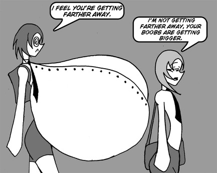 It looks like, since she is the stick lady with huge breasts, that her breasts are completely the largest. And if she wasn't a stick figure, then her boobs would've been even bigger.