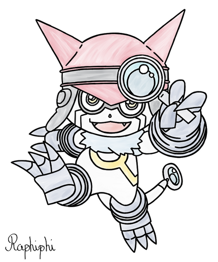 This lil fella's apparently the new lead partner of the upcoming Digimon series and I really liked his design from first looks - so I decided to do some art of himNot really good at metal arms so it might be wrong in some places hah =v="