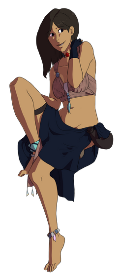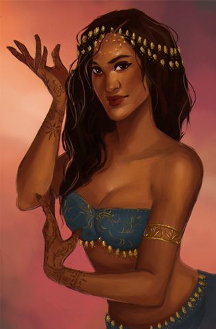 As for the subject, Zahira! She got another update, design-wise. Will likes her to get new tattoos now and again, and I was happy to redesign her outfit a little. Her last one...was a little iffy. Updated sheet may be coming soon, but for now, just a nice painting. Also she and Nick are married now??? Hooray!