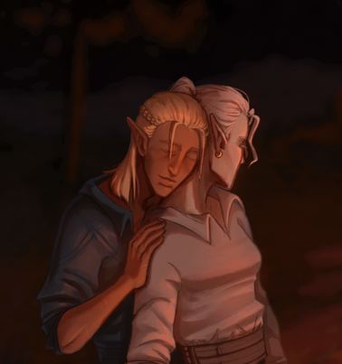 This is so lovely. The lighting is particularly interesting. ((Also not sure why someone would think she looks masculine? The only thing I can think of is being unfamiliar with the anatomy of elven noses since DAII.))