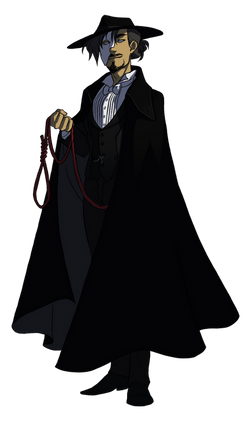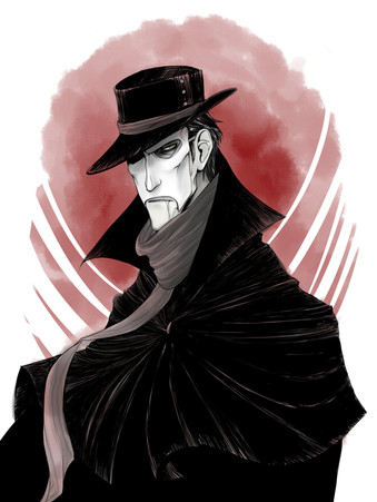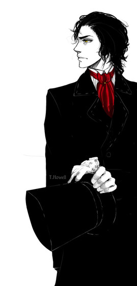 Doc Holliday, Tombstone (Val Kilmer-ish) style. Because it doesn't really look like Val Kilmer, but was drawn after seeing him play the character in Tombstone. How marvelous indeed. Nearly made me cry at the end of the movie.Not much to say here. I penciled, inked, and colored it entirely during school today, which proves I am an art machine when motivated. I think it turned out quite well. ^^ Three coats of black marker, though. GAH. It smells really bad. Other than that...yeah. I like it.