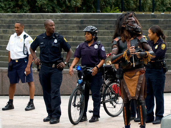 LoL yeah I love their expressions. I think they eventually took a picture. When I clip-clopped out of the dragoncon area and into football territory, that's where the real fun started :]