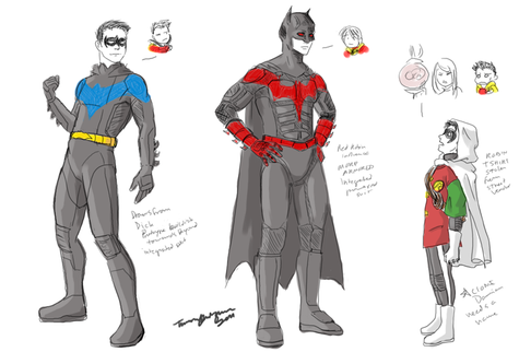 I saw 's character study and reference sheet of the new Batman and Robin : Dick Grayson and Damian Wayne here [link] and I decided to do my ownI just bought an issue of Batman Reborn-and it.Was.Awesoooooooome -even if it did cost almost 90 bucks Malaysian Ringgit-which is A LOT for a comic book,minus the fact that it's shipped straight from the States and it has a hard cover and everything-buuuuuuut it was totally worth it! Besides,my mom paid for it-but then I'm gonna have to pay her back xD; Gosh,I can't wait to get my hands on the next book-but then that would cost another 85 bucks